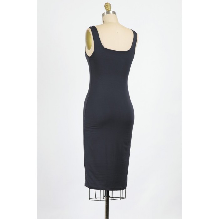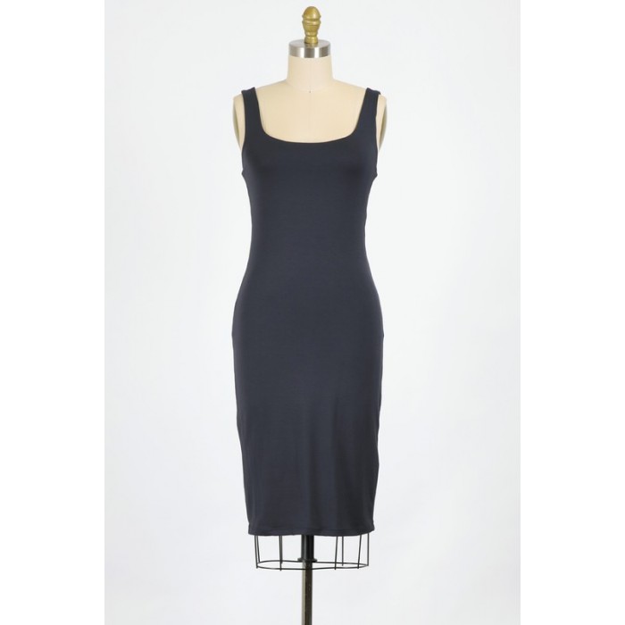 Rayon Modal Bodycon Tank Dress with Square Neck.