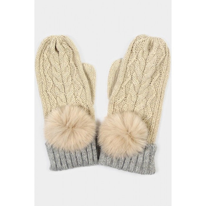 Angora Pom Pom Two Tone Knit Mitten Gloves