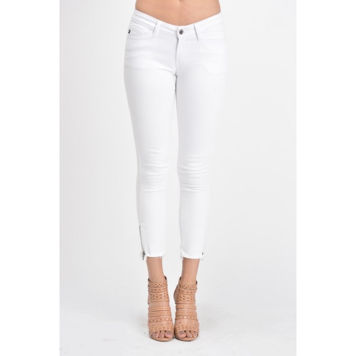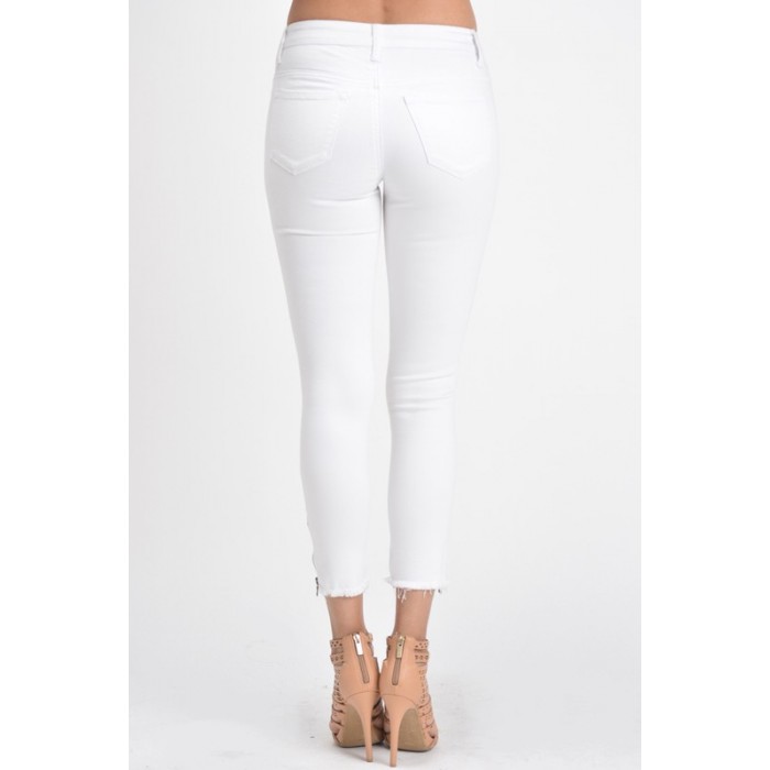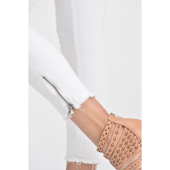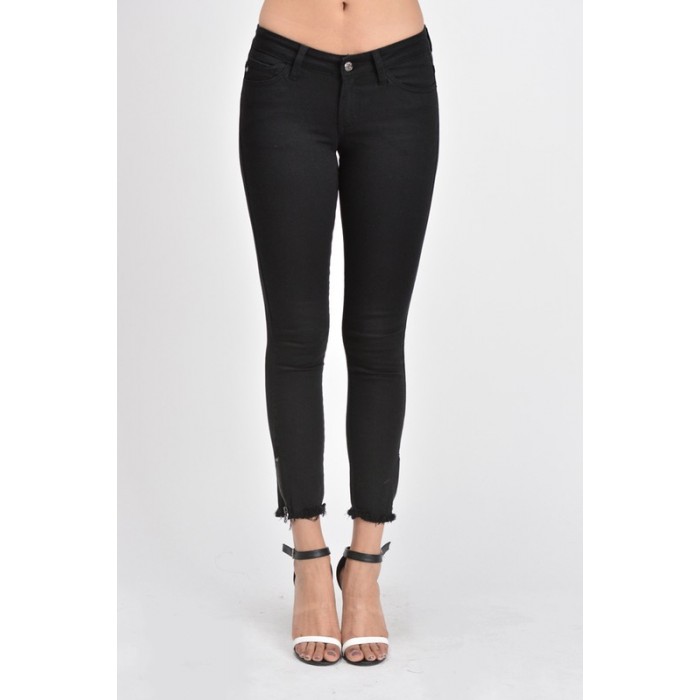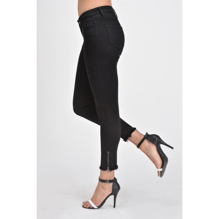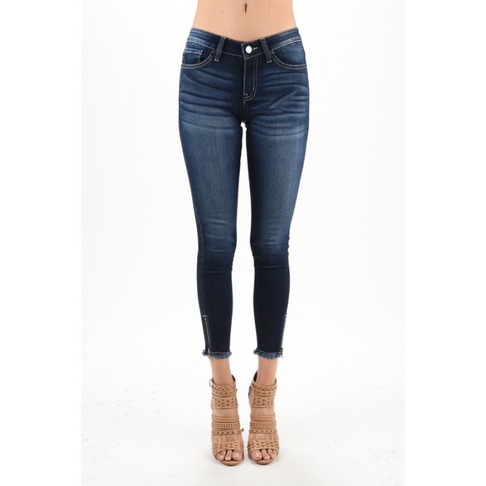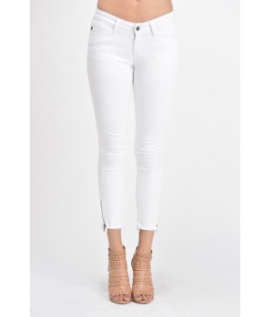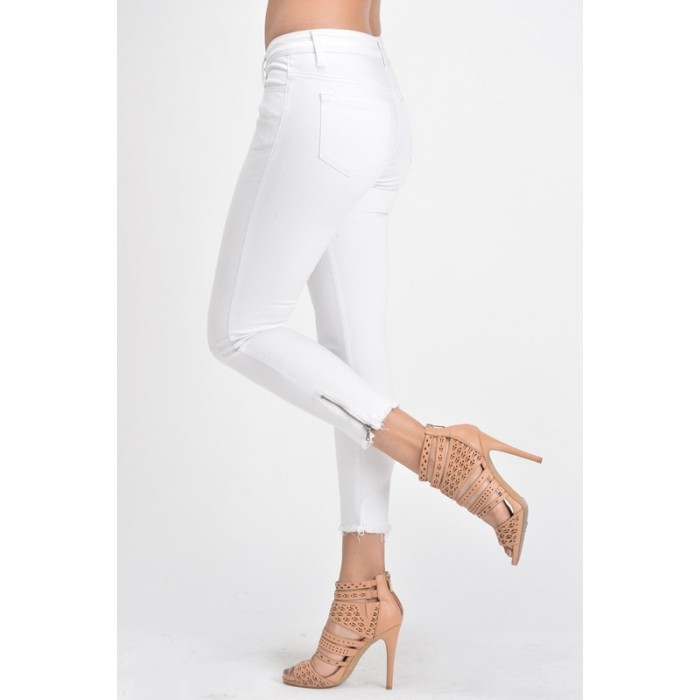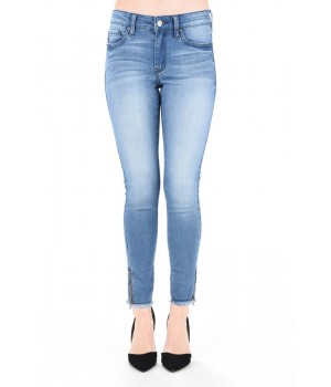 Stretchy comfortable skinny jeans with ankle zipper accent.
