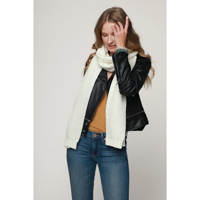 Plush chuncky cable knit oblong scarf.