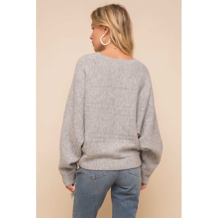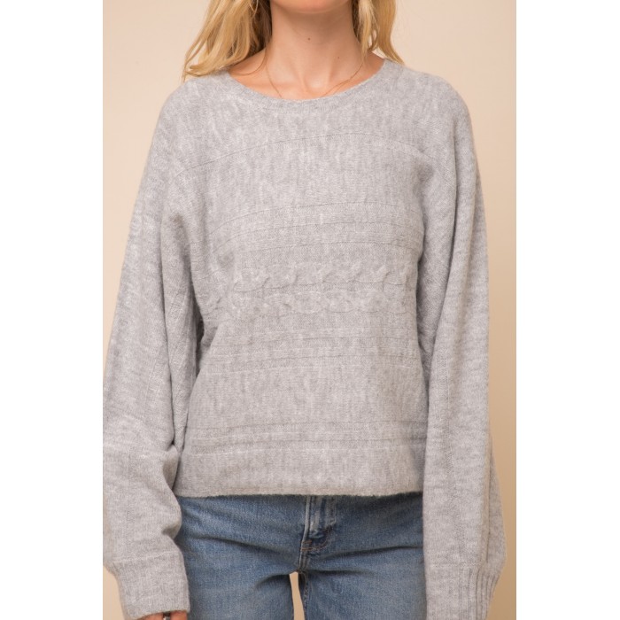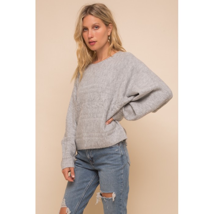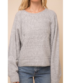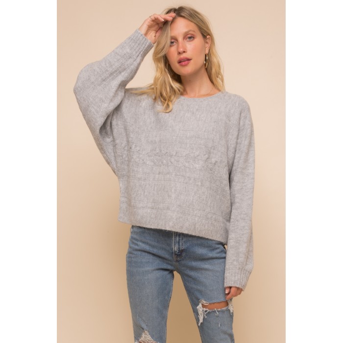 CABLE KNIT DOLMAN SLEEVE CROP PULLOVER SWEATER