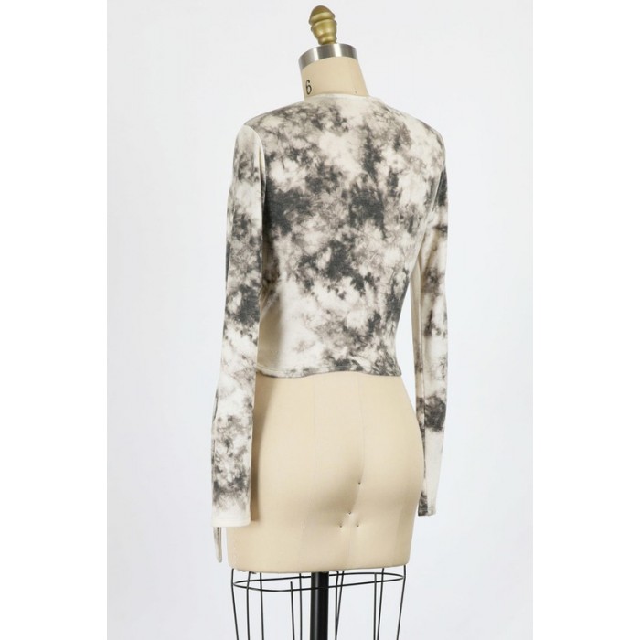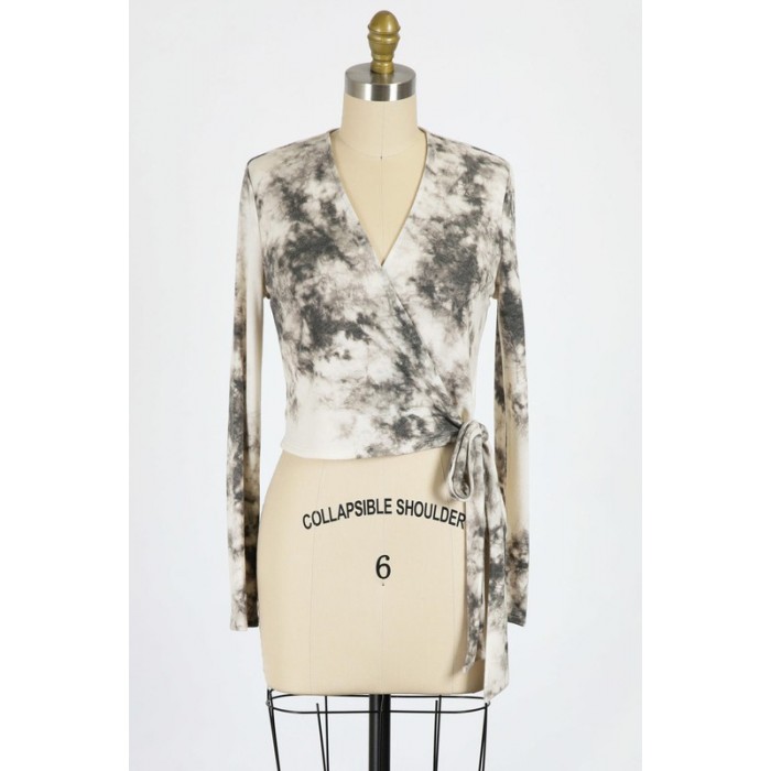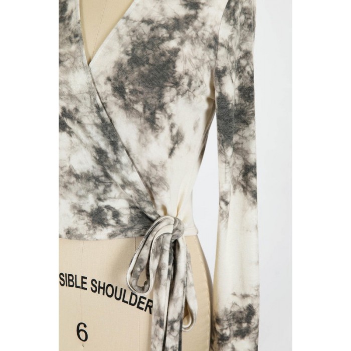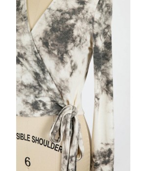 TIE-DYE PRINTED TERRY WRAP TOP WITH LONG SLEEVE.