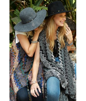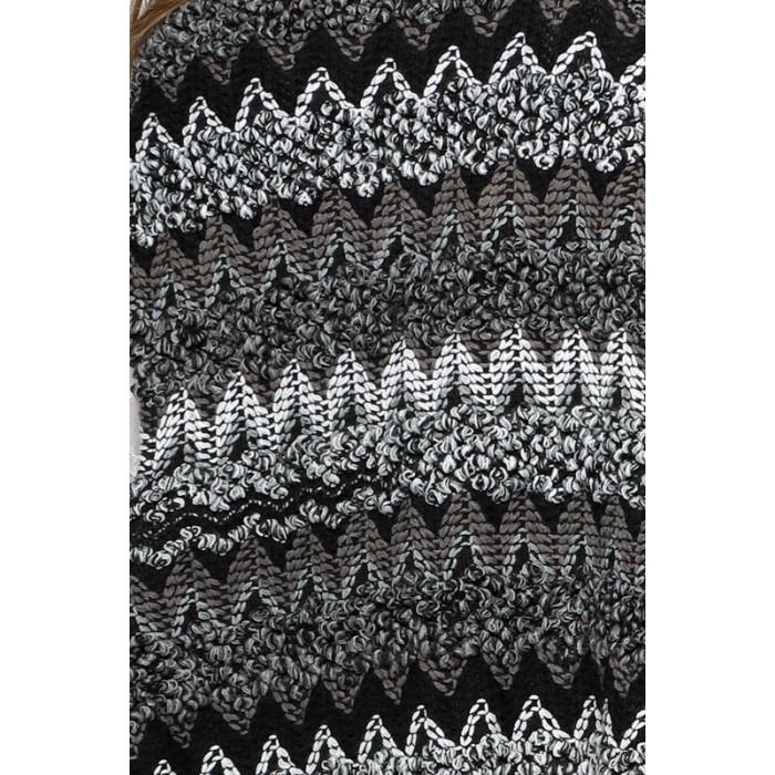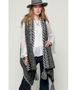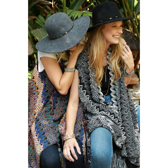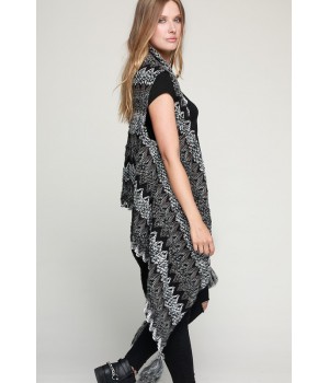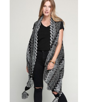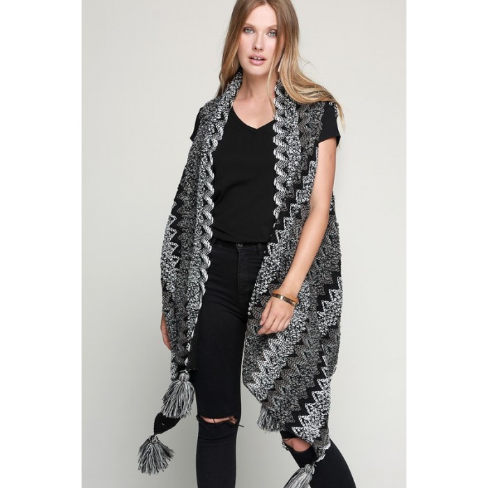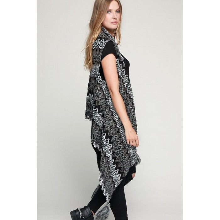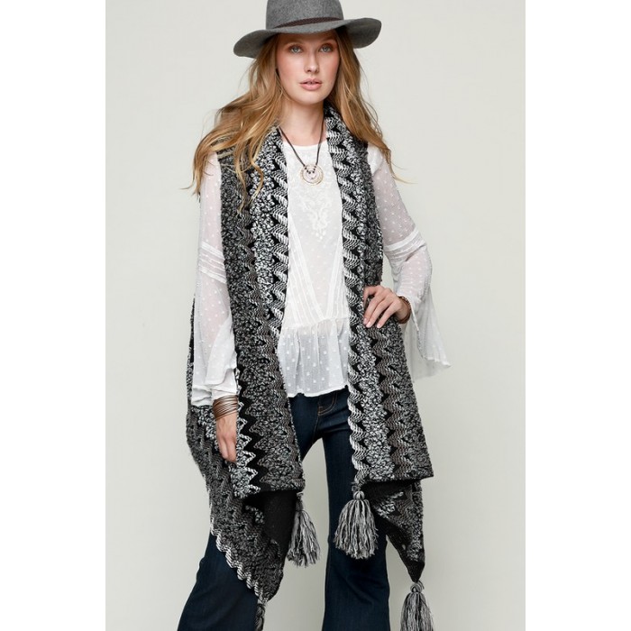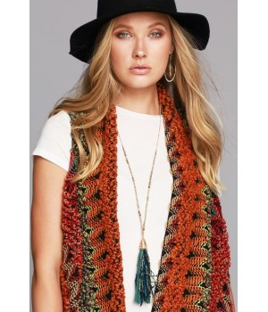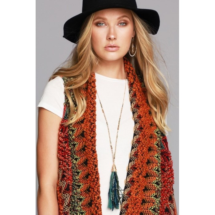 Multi thread Missoni inspired knit boucle vest with tassel accent.